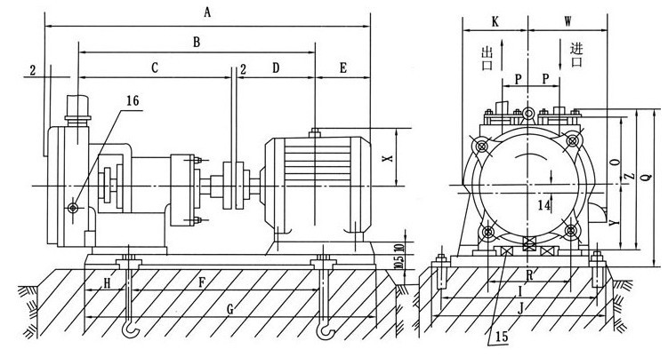 五、SZB型水環(huán)式真空泵安裝尺寸: |