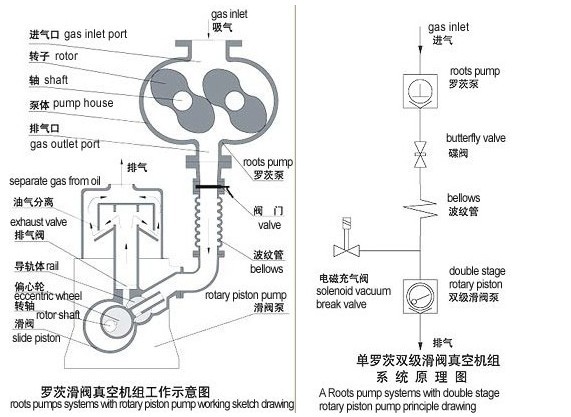 六、JZJH系列羅茨滑閥真空機組工作原理: