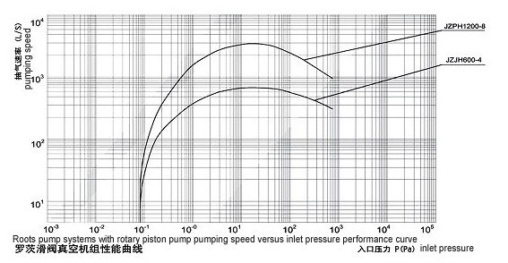 八、JZJH系列羅茨滑閥真空機組的性能曲線圖: